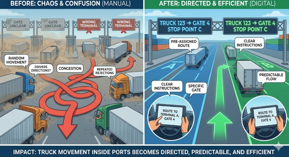 Impact: Truck movement inside ports becomes directed, predictable, and efficient.