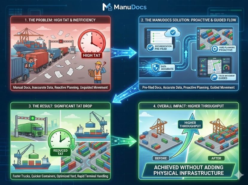 ManuDocs does not automate trucks alone. By fixing data flow and execution: CFSs optimize yard utilization