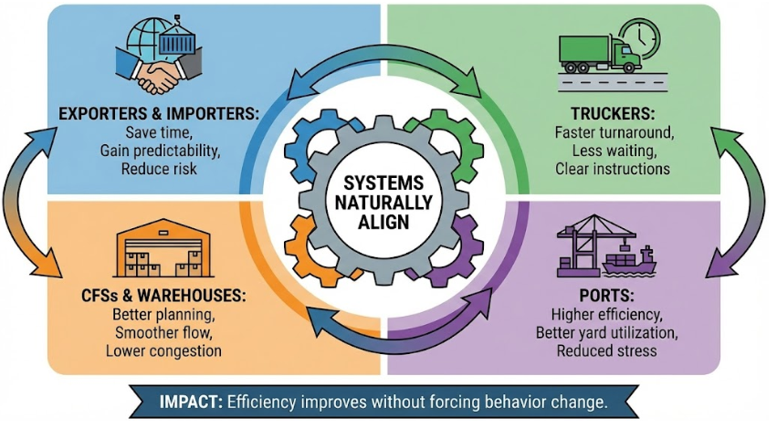 Impact: Ports and CFSs move from reactive handling to planned execution.