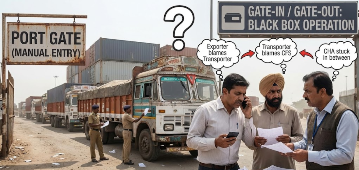 Ports and CFS operations are black boxes. Current reality Gate-in times are not digitally synced with exporters Gate-out delays are not transparently recorded Manual slips, stamps, and verbal updates dominate Result Exporter blames transporter Transporter blames CFS CHA gets stuck in between No data to prove who caused the delay This is where the blame game begins.