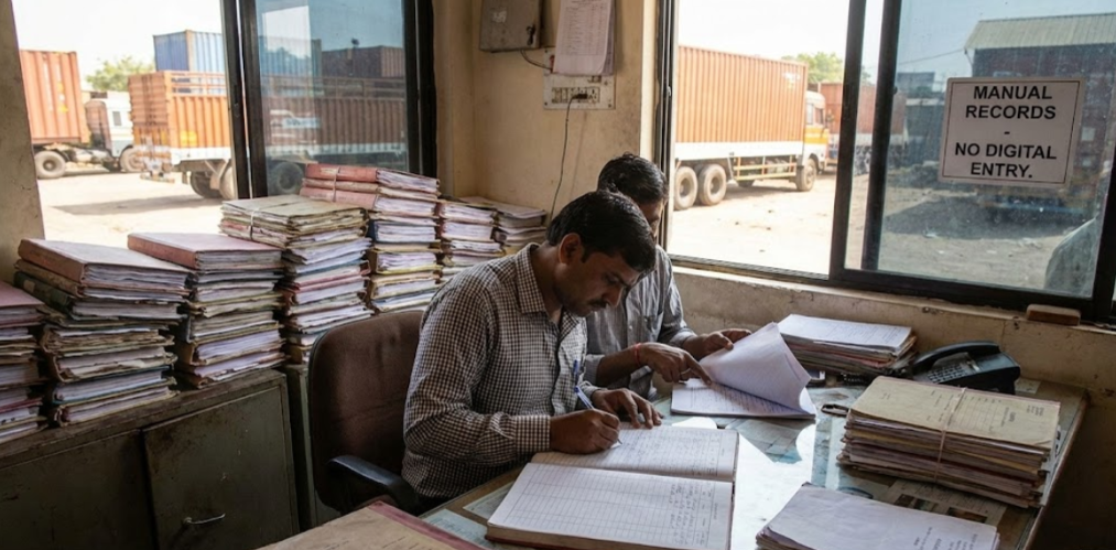 Despite digital India, logistics still runs on paper. Current practices Physical yards maintain manual registers Orders are stored physically Same data entered again and again: By exporter By CHA By transporter By CFS Problems caused Data mismatches Delays in verification Human errors No single source of truth Manual operations slow everything down.