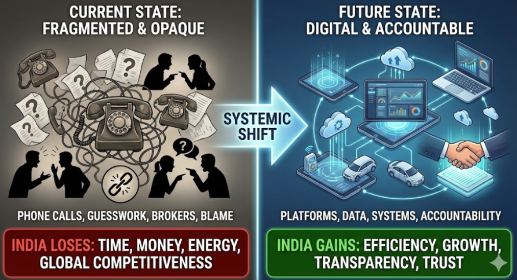 This is not just a trucking issue. It’s not just a port issue. It’s not just a CHA issue. It is a systemic lack of visibility, coordination, and accountability. Until logistics moves from: Phone calls → platforms Guesswork → data Brokers → systems Blame → accountability India will continue to lose: Time Money Energy Global competitiveness