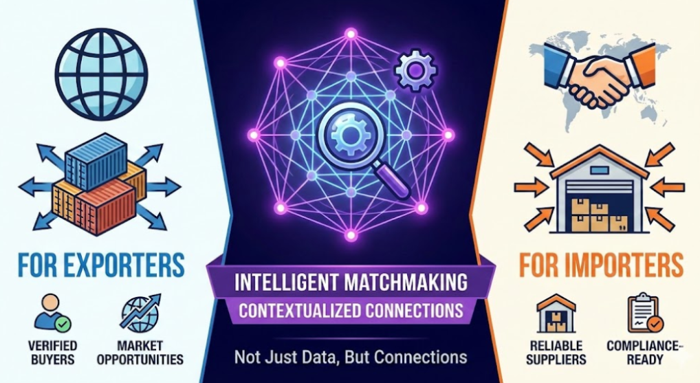In short: We are not helping MSMEs read data. We are helping MSMEs act on intelligence. And that is how we solve the most brutal and initial problem of Indian exporters and importers — finding real opportunities in a complex global market.