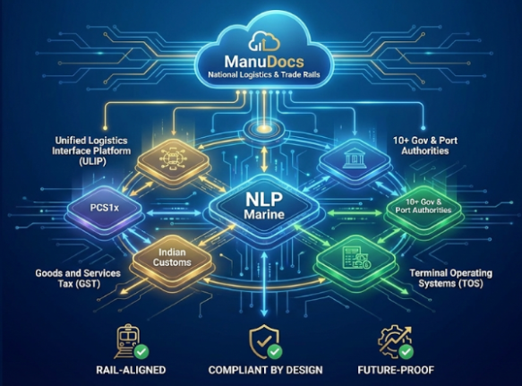 ManuDocs is designed to operate on top of official government systems, not parallel to them. At the core is NLP Marine, which is already integrated with: Unified Logistics Interface Platform (ULIP)